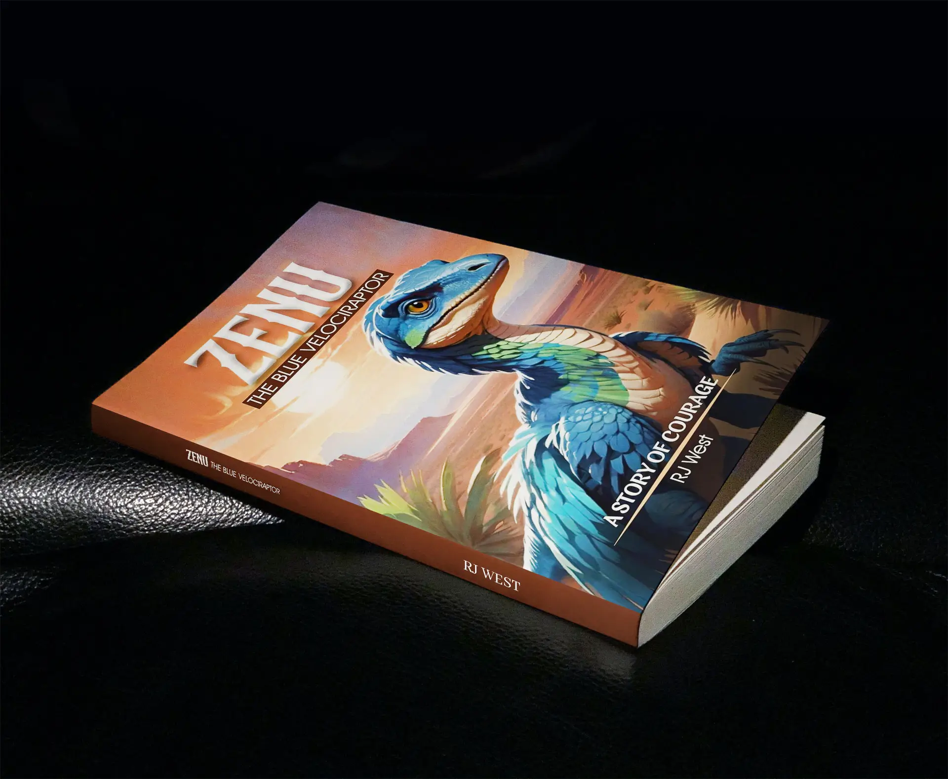 “”Zenu, The Blue Velo” introduces readers to Zenu, a young Velkianous (velociraptor) embarking on his journey into Velkianhood. He lives with his father, mother, and two siblings in the vibrant village of Osgolia, nestled in the region of Chigolia (modern-day Mongolia).