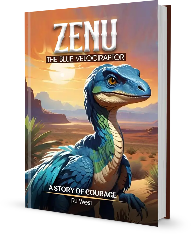 “”Zenu, The Blue Velo” introduces readers to Zenu, a young Velkianous (velociraptor) embarking on his journey into Velkianhood. He lives with his father, mother, and two siblings in the vibrant village of Osgolia, nestled in the region of Chigolia (modern-day Mongolia).